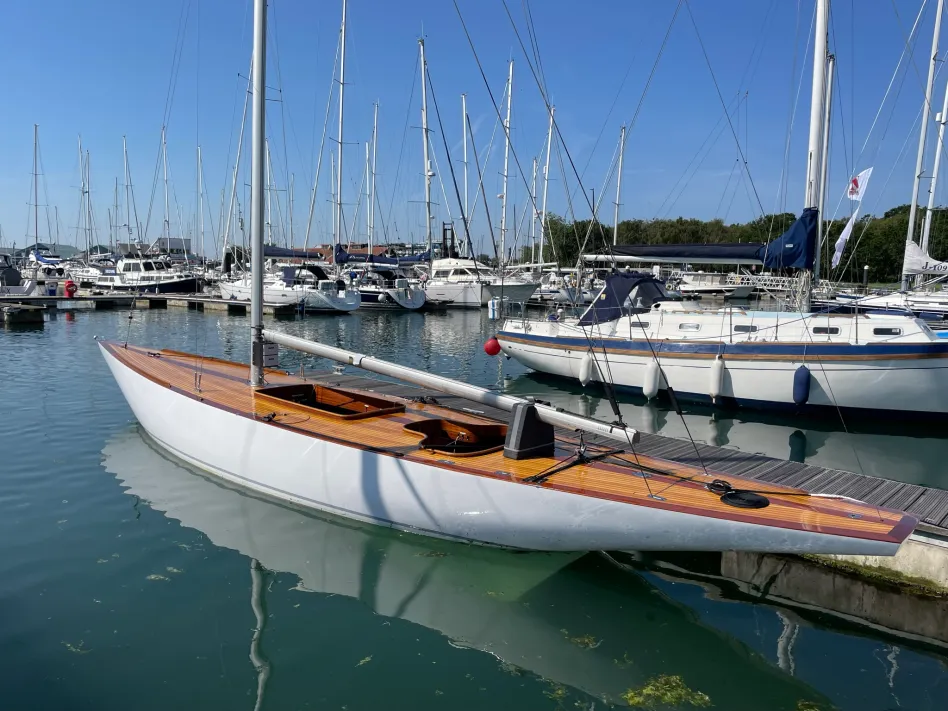 Acheté par le propriétaire actuel en 2019, il a ensuite subi une importante refonte impliquant des réparations et améliorations structurelles importantes, un tout nouveau système et de nouveaux systèmes. Le chantier Clare Lallows sur l’île de Wight, avec un expert expérimenté en yachts, a réalisé une refonte structurelle comprenant de nouvelles planches, des châssis et un remplacement du gouvernail.